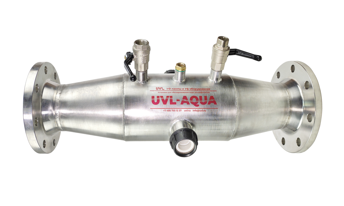 Instalasi UV bertekanan sedang dalam wadah baja tahan karat, digunakan di area yang memerlukan pengolahan air dengan radiasi UV dengan kisaran 200 hingga 400 Nm. Dirancang untuk kolam yang lebih besar. Sinar ultraviolet membantu menetralkan trikloramina (berasal dari penggunaan klorin), yang secara signifikan meningkatkan kualitas air di kolam.
